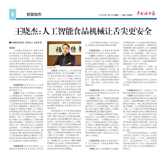 《中國(guó)城市報(bào)》點(diǎn)贊萬杰智能:人工智能讓舌尖更安心