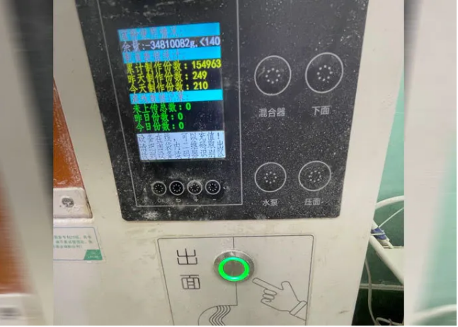 河北省衡水市,目前鮮面機投放數量在80臺左右,是由萬杰智能的多年的合作伙伴郭總負責運營,在走訪到惠民市場的面條經營網點時,眼前的情景讓人感觸頗深:店主一人同時操控著兩臺鮮面機!經與郭總了解后得知,在店主第一次看到鮮面機后毫不猶豫交錢用了一臺,因為店主一直為毫無特色的面條發愁,用了一周,對設備的操控性和穩定性有了信心后,又上了一臺,就是因為面條每天的銷量大,一臺無法滿足,上了兩臺后的問題來了,如果再增加人,肯定就不劃算了,店主想了一招,兩臺設備一左一右放在一起,人坐中間,同時操作!目前兩臺設備每天的制面數量在800份左右,形成了穩定的客流量。